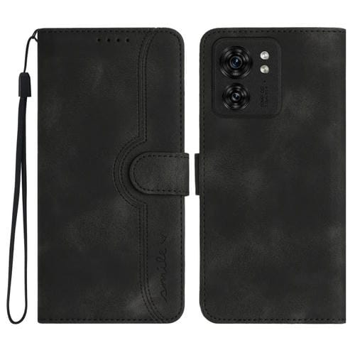 For Motorola Edge 40 Leather Phone Case Skin Feeling Heart Pattern Cover (Black)