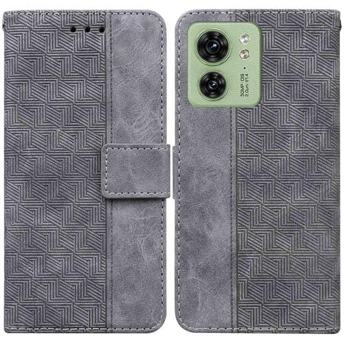 - 1x Funda de Teléfono Motorola Edge 40 Cuero Relieve Geométrico (Gris)