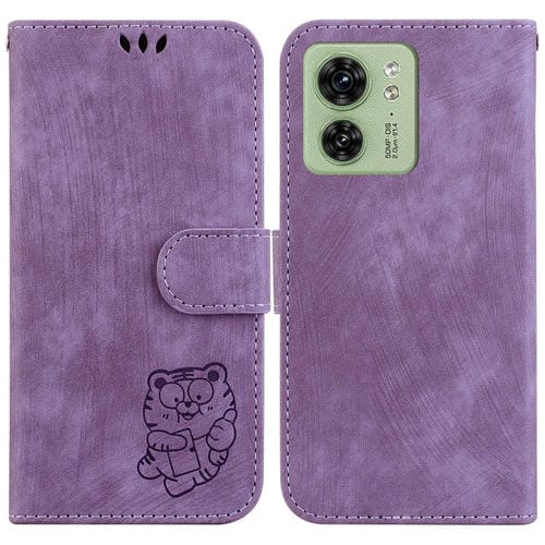 For Motorola Edge 40 Little Tiger Embossed Leather Phone Case(Purple)