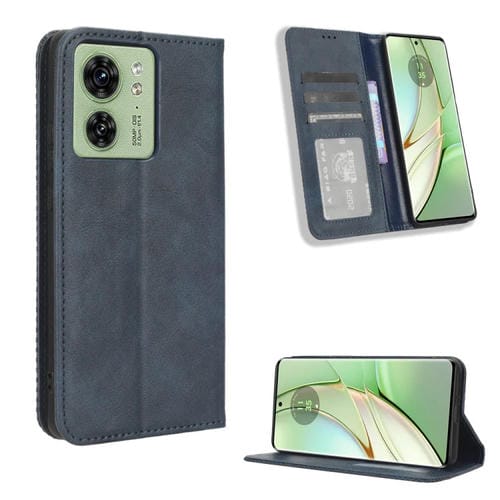 - 1x Funda de Cuero con Hebilla Magnética para Motorola Edge 40 Textura Retro (Azul)
