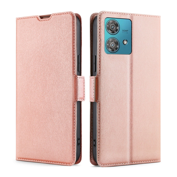 For Motorola Edge 40 Neo 5G Ultra-thin Voltage Side Buckle Horizontal Flip Leather Phone Case(Rose Gold)