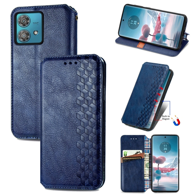 Funda de Teléfono para Motorola Edge 40 Neo Cubic Grid Cuero Magnético Prensado (Azul)