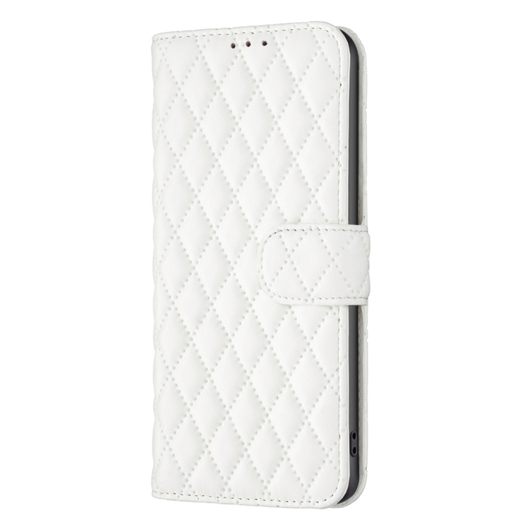 Funda de Cuero con Tapa para Motorola Edge 40 Neo Diamond Lattice (Blanco)