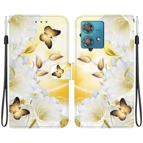 - 1x Estuche para Motorola Edge 40 Neo de cuero con dibujo coloreado y textura de Cristal (Epiphyllum Mariposa Dorada)
