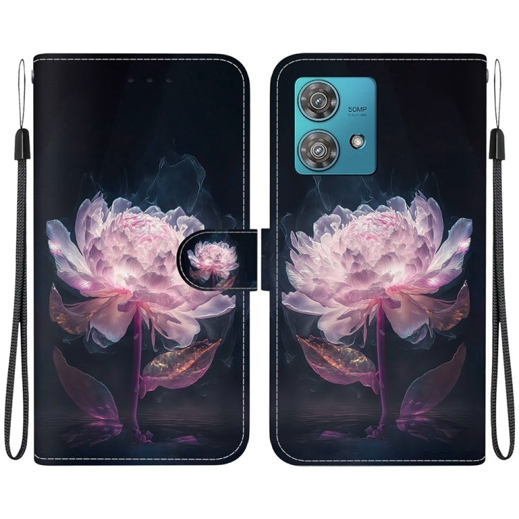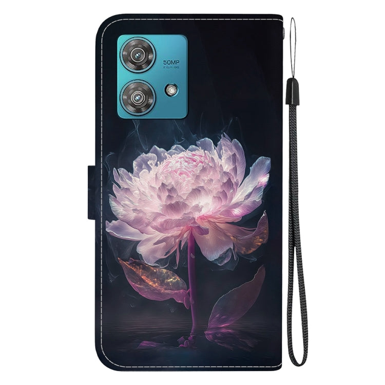 Estuche para Motorola Edge 40 Neo de Cuero con Dibujo Coloreado y Textura de Cristal (Peonía Púrpura)