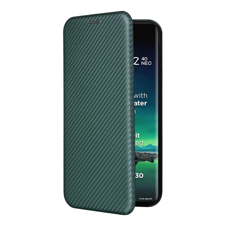 Funda de Cuero para Motorola Edge 40 Neo con Tapa y Textura de Fibra de Carbono (Verde)