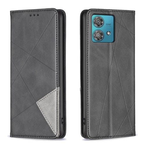• 1x Funda de Teléfono Motorola Edge 40 Neo Cuero Magnético Textura Rombo (Negro)