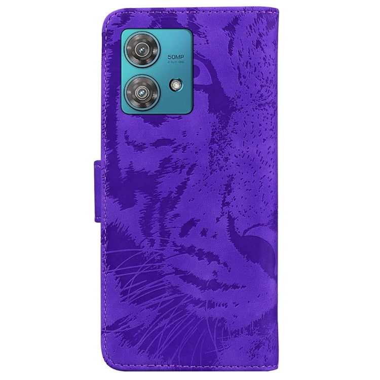 Funda de Cuero para Motorola Edge 40 Neo Tiger con Patrón en Relieve (Púrpura)
