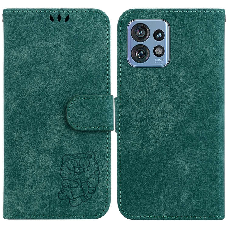 Funda de Cuero Motorola Edge 40 Pro con Relieve Little Tiger (Verde)
