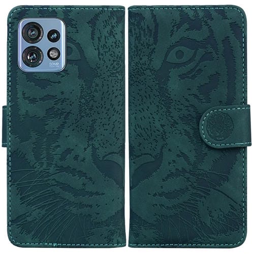 Funda de Cuero para Motorola Edge 40 Pro con Estampado de Tigre en Relieve (Verde)