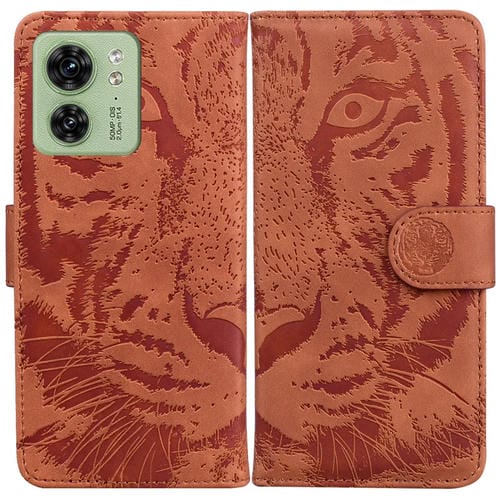 Funda de Cuero para Motorola Edge 40 Tiger con Relieve Patrón (Marrón)