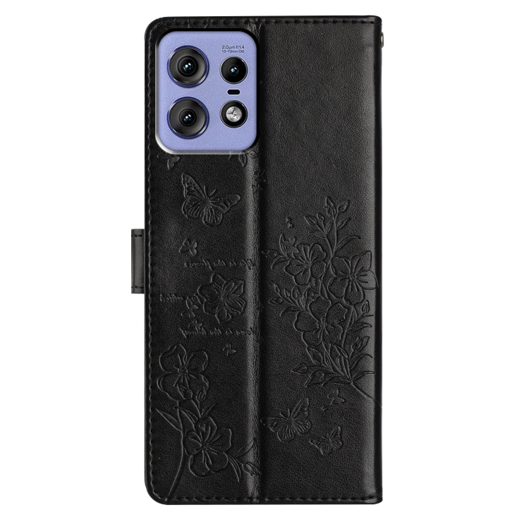 Funda de Cuero para Motorola Edge 50 Pro con Mariposas y Flores (Negro)