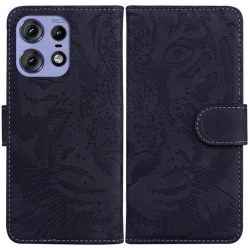 Funda de Cuero para Motorola Edge 50 Pro Tiger con Patrón en Relieve (Negro)