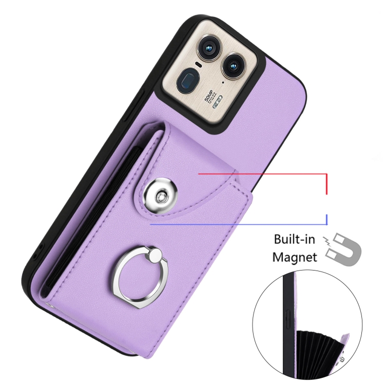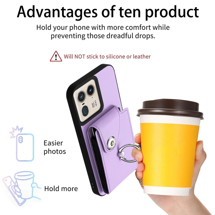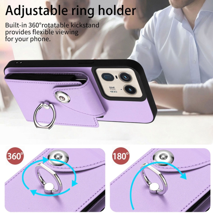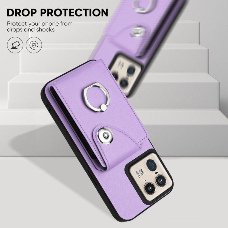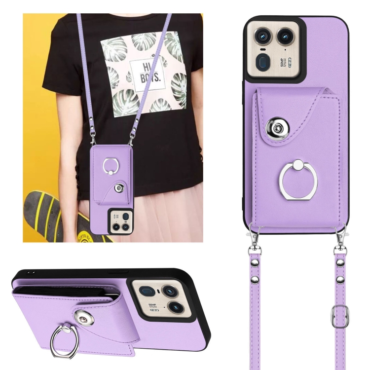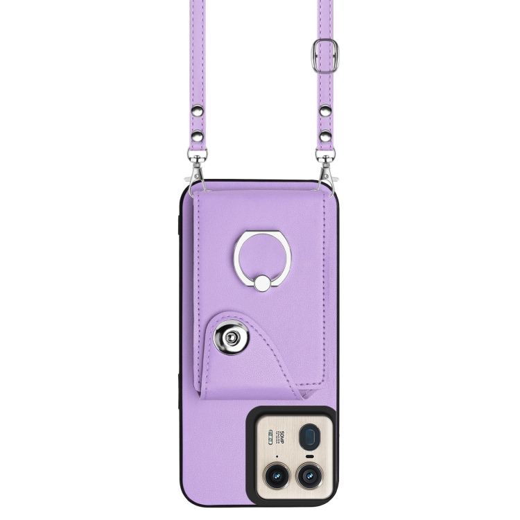 Funda para Motorola Edge 50 Ultra Versión UE Bolsa para Tarjeta con Soporte para Anillo y Cordón Largo (Púrpura)