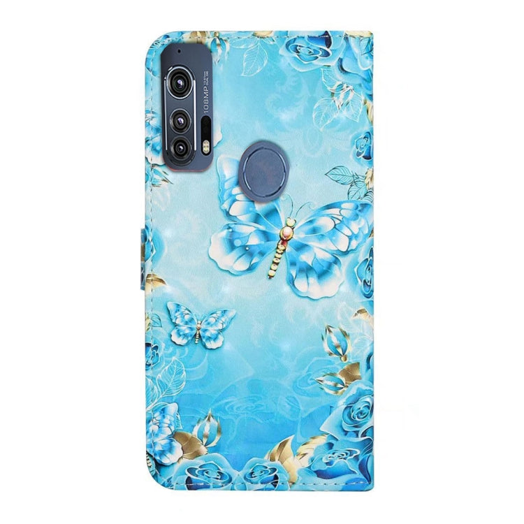 Funda de Cuero para Motorola Edge + con Dibujo 3D en Relieve al Óleo (Mariposas Azules)