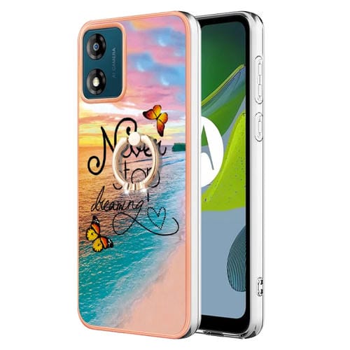 - 1x Funda TPU Galvanoplastia IMD con Anillo para Motorola Moto E13 (Dream Butterfly)