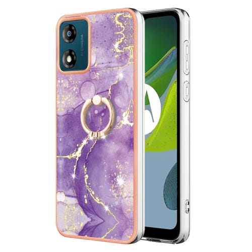 - 1x Funda para Motorola Moto E13 Galvanoplastia Mármol IMD TPU con Soporte para Anillo (Púrpura)