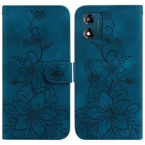 Funda de Teléfono Motorola Moto E13 Lily Cuero en Relieve (Azul Oscuro)