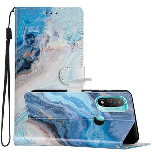 Estuche para Teléfono Motorola Moto E20 E30 E40 Cuero Dibujo Coloreado (Mármol Azul)