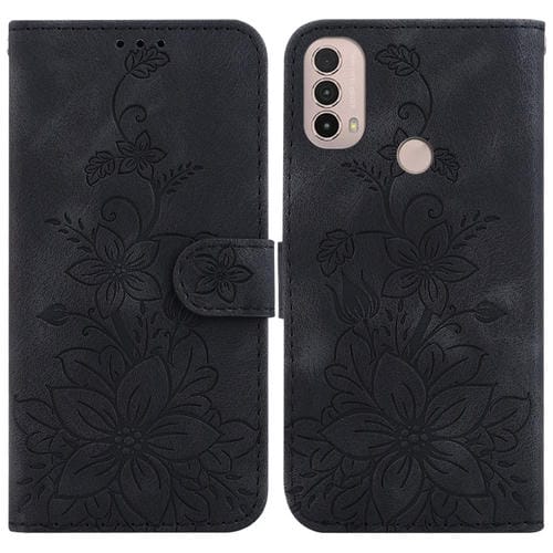 Funda para Motorola Moto E20 E30 E40 de Cuero con Relieve Lily (Negro)