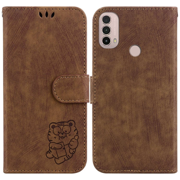 Funda para Motorola Moto E20 E30 E40 de Cuero con Relieve Little Tiger (Marrón)