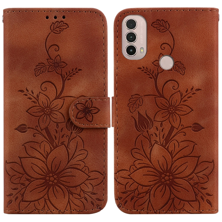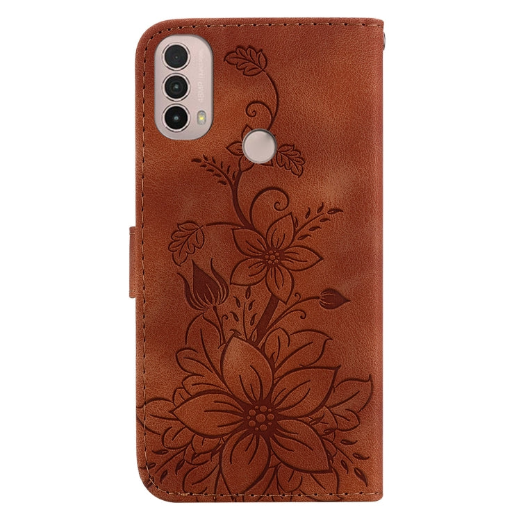 Funda para Motorola Moto E20 E30 E40 Lily Cuero En Relieve (Marrón)