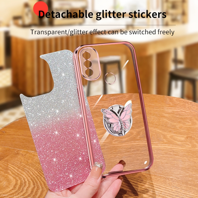Funda TPU para Motorola Moto E20 con Soporte Mariposa y Brillo Degradado (Azul Sierra)