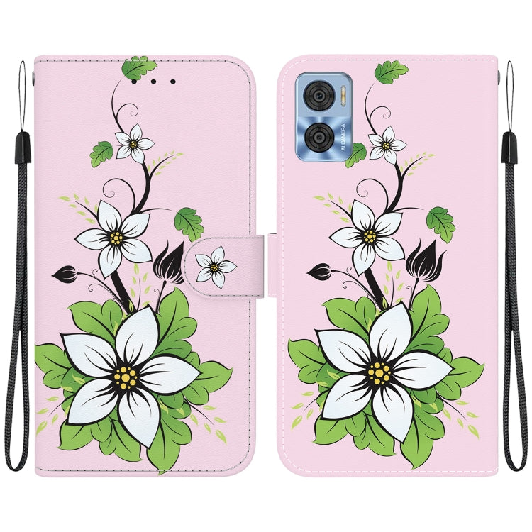 Funda para Motorola Moto E22 / E22I de Cuero con Dibujo Coloreado y Textura de Cristal (Lirio)