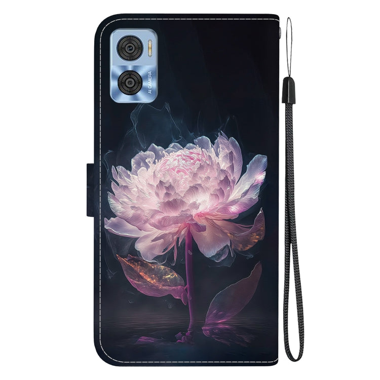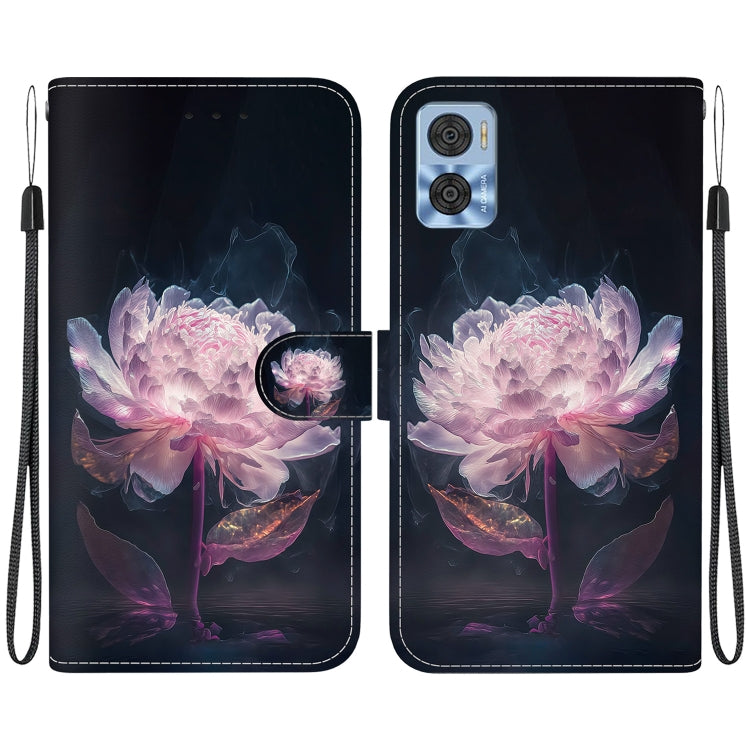Funda para Motorola Moto E22 / E22I de Cuero con Dibujo Coloreado y Textura de Cristal (Peonía Púrpura)