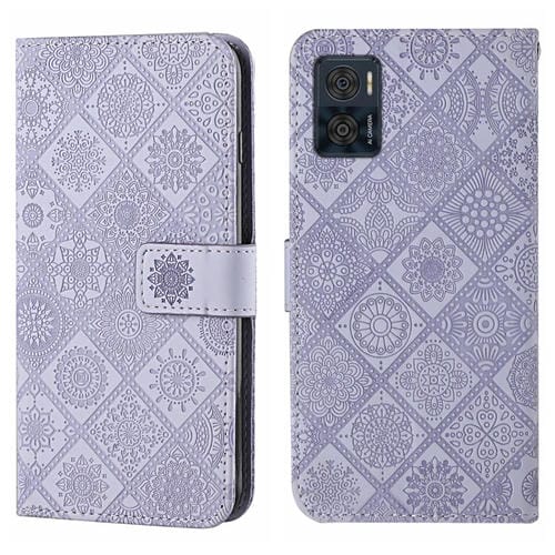 Funda para Motorola Moto E22 / E22I de Cuero con Patrón en Relieve Estilo Étnico (Púrpura)