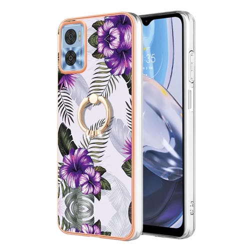 Funda TPU con Anillo para Motorola Moto E22 / E22I Galvanoplastia IMD (Flor Púrpura)