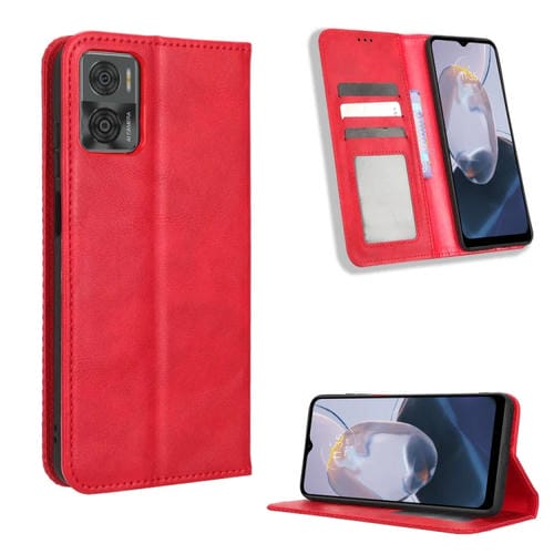 Funda de Cuero con Hebilla Magnética para Motorola Moto E22 / E22I Textura Retro (Rojo)