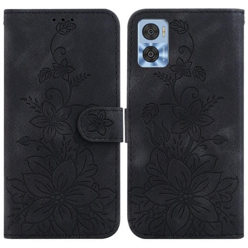 - 1x Funda para Motorola Moto E22 / E22I Lily Cuero en Relieve (Negro)