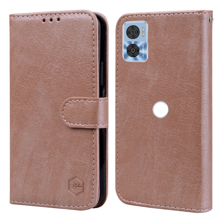 Funda para Motorola Moto E22 / E22I PU + TPU Textura de Cuero Aceitoso (Champán)