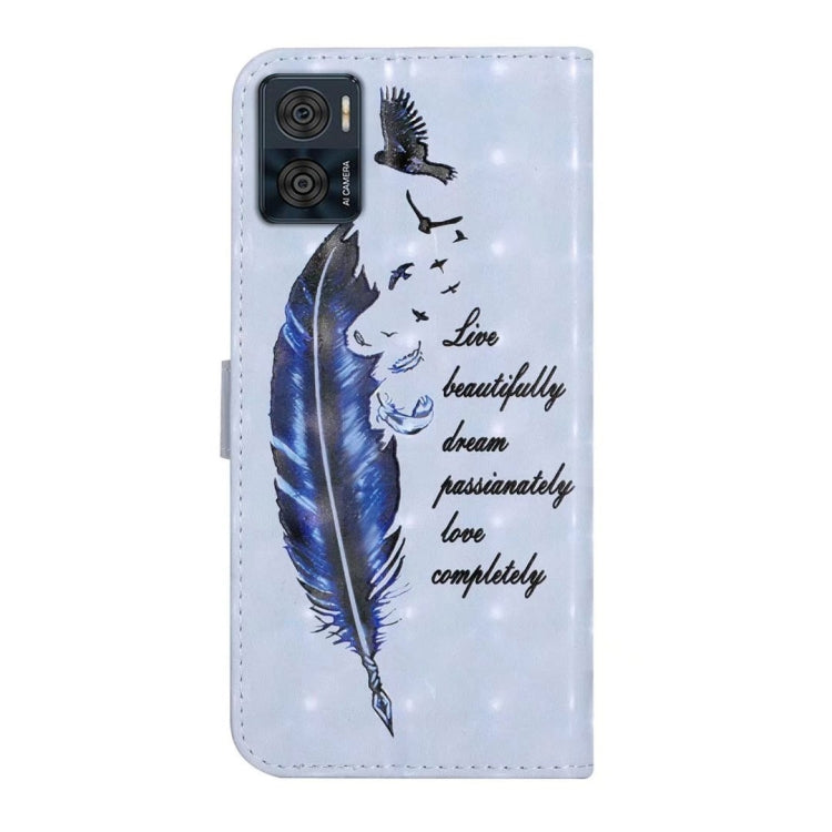 Funda de Cuero para Motorola Moto E22 con Dibujo 3D en Relieve al Óleo (Pluma Azul)