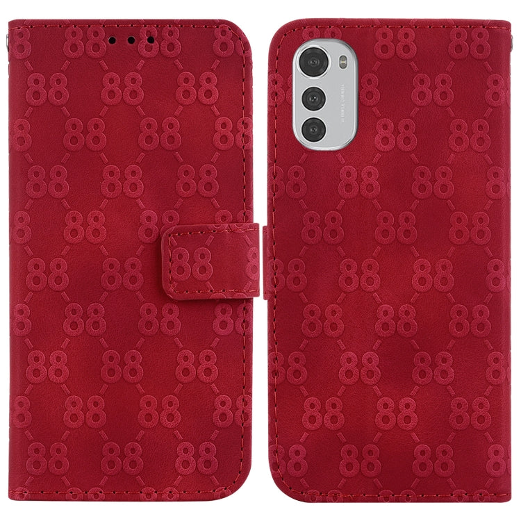 Estuche para Motorola Moto E32 de Cuero en Relieve Doble Forma de 8 (Rojo)