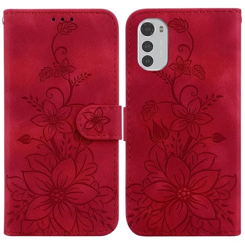 Funda para Motorola Moto E32 Lily de Cuero en Relieve (Rojo)