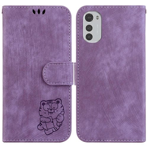 For Motorola Moto E32 Little Tiger Embossed Leather Phone Case(Purple)