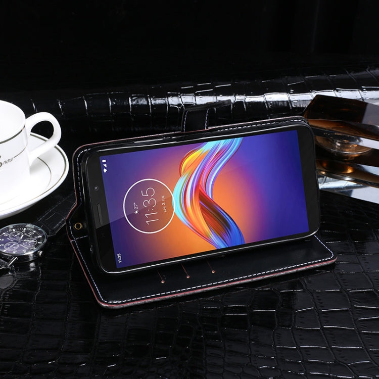 Para Motorola Moto E6 Play idewei Crocodile Texture Funda de cuero con tapa horizontal con soporte, ranuras para tarjetas y billetera (azul oscuro)