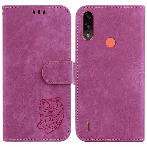 Funda para Motorola Moto E7 Power / E7I Power de Cuero con Relieve Little Tiger (Rojo Rosa)