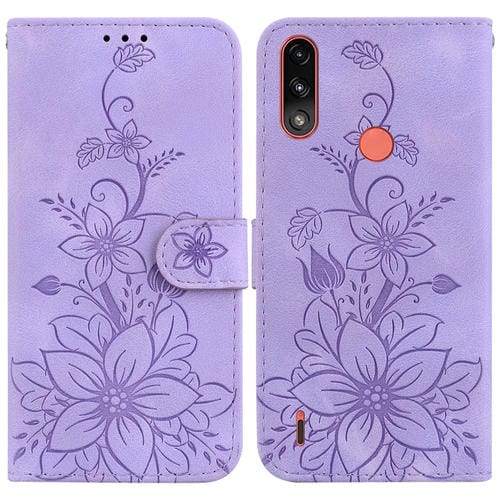 Funda para Motorola Moto E7 Power y E7I Power Lily de Cuero En Relieve (Púrpura)
