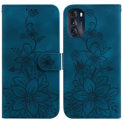 For Motorola Moto G 2022 Lily Embossed Leather Case (Dark Blue)