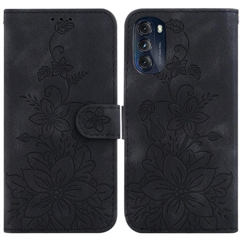 Funda de Cuero con Relieve Lily para Motorola Moto G 2022 (Negro)