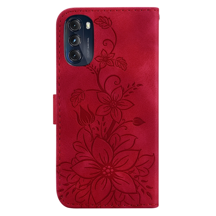 Funda de Cuero con Relieve Lily para Motorola Moto G 2022 (Rojo)