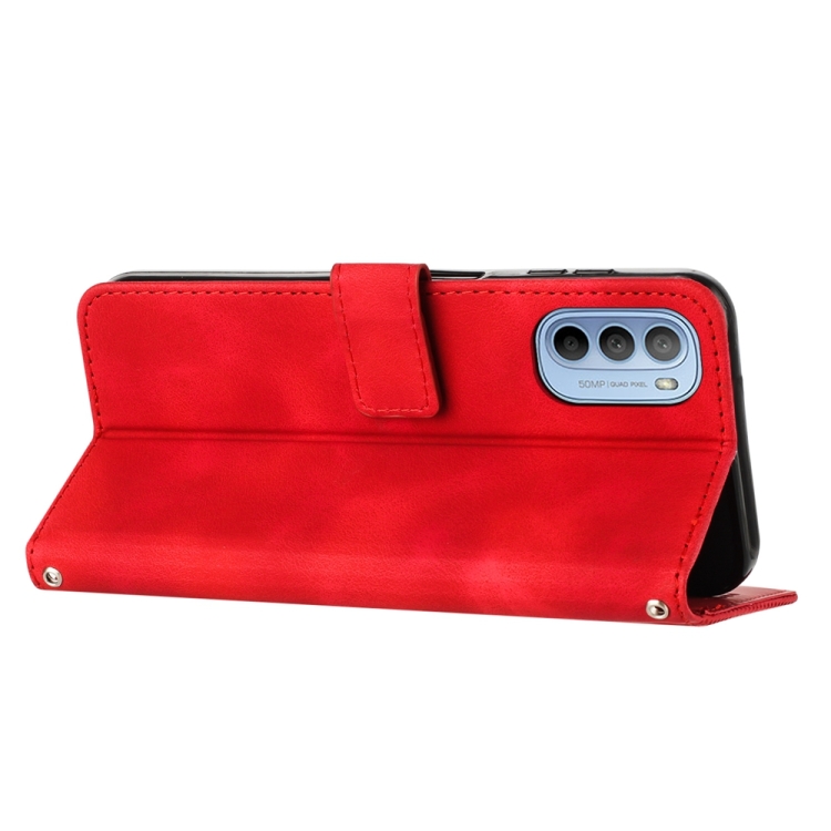 Funda de Cuero para Motorola Moto G 5G 2022 Dream Triangle con Cordón (Rojo)