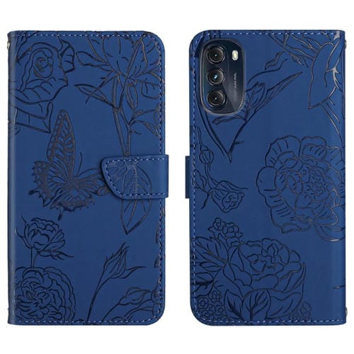 Funda de piel para Motorola Moto G 5G 2022 con diseño Butterfly Peony (Azul)