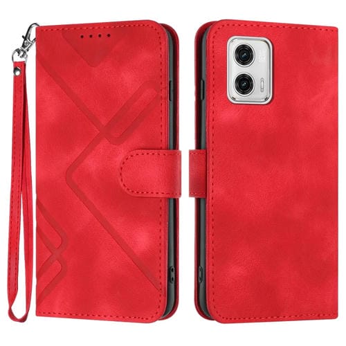 Funda de Cuero para Motorola Moto G 5G 2023 con Patrón de Líneas y Sensación de Piel (Rojo)