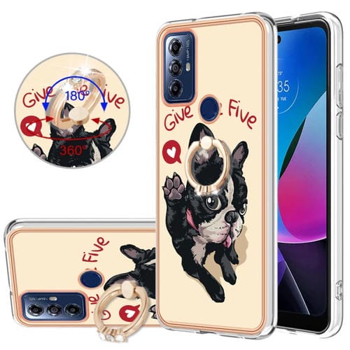 Caja para Motorola Moto G Play 2023 IMD Doble Cara Galvanizada con Soporte para Anillo (Perro de la Suerte)