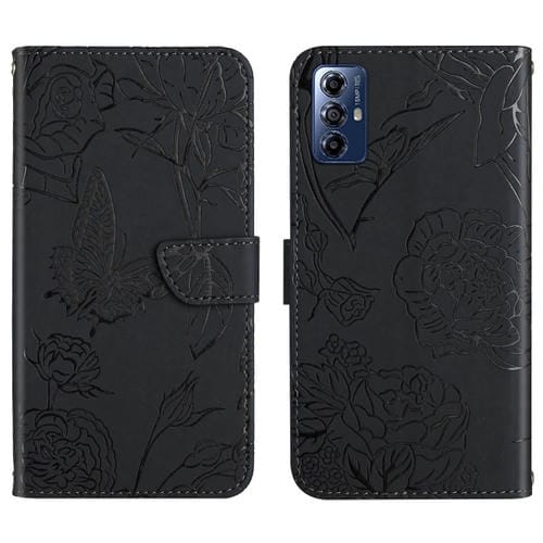Funda de Cuero con Tapa en Relieve Skin Feel Butterfly para Motorola Moto G Play 2023 (Negro)