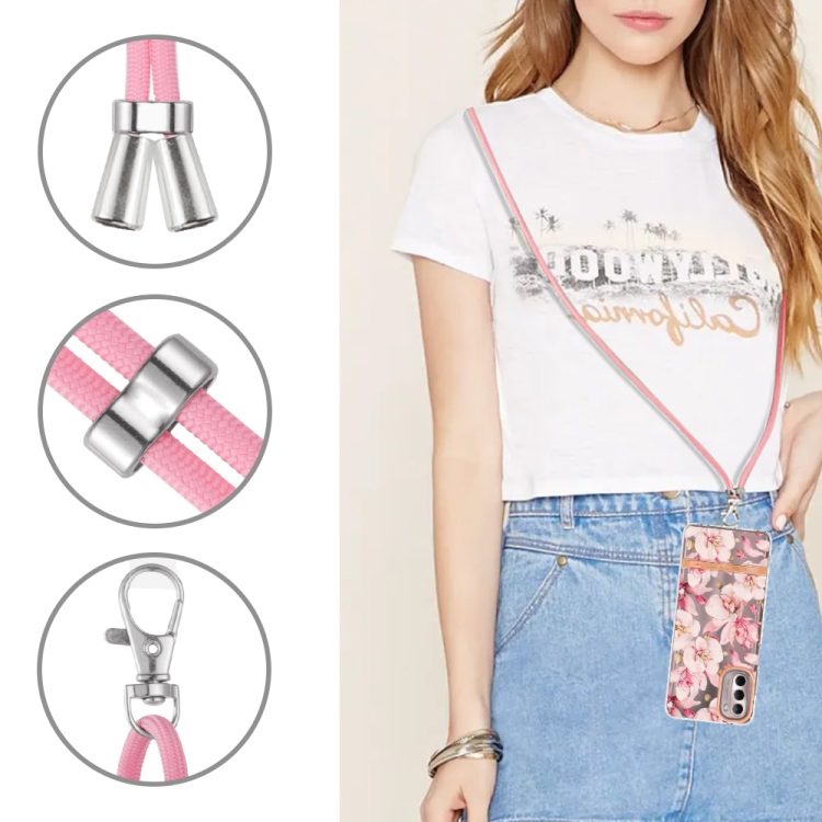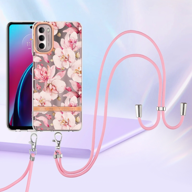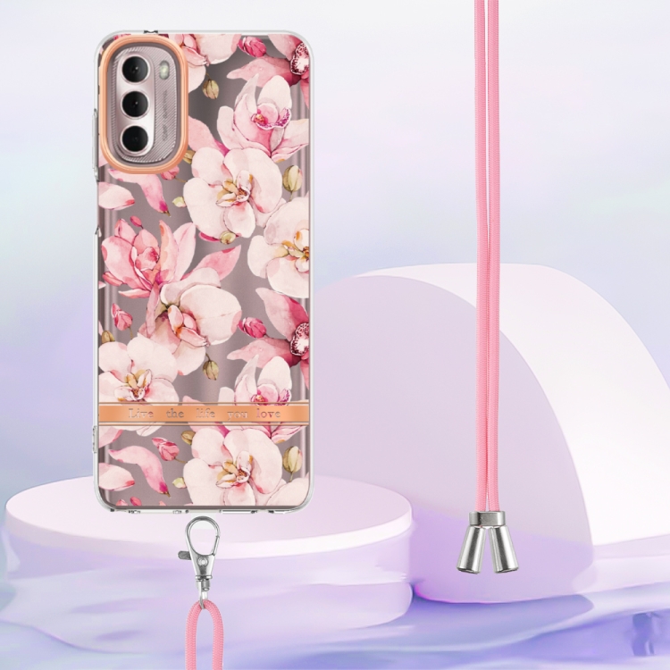Para Motorola Moto G Stylus 2022 4G Flowers Series Case de teléfono TPU con cordón (Pink Gardenia)